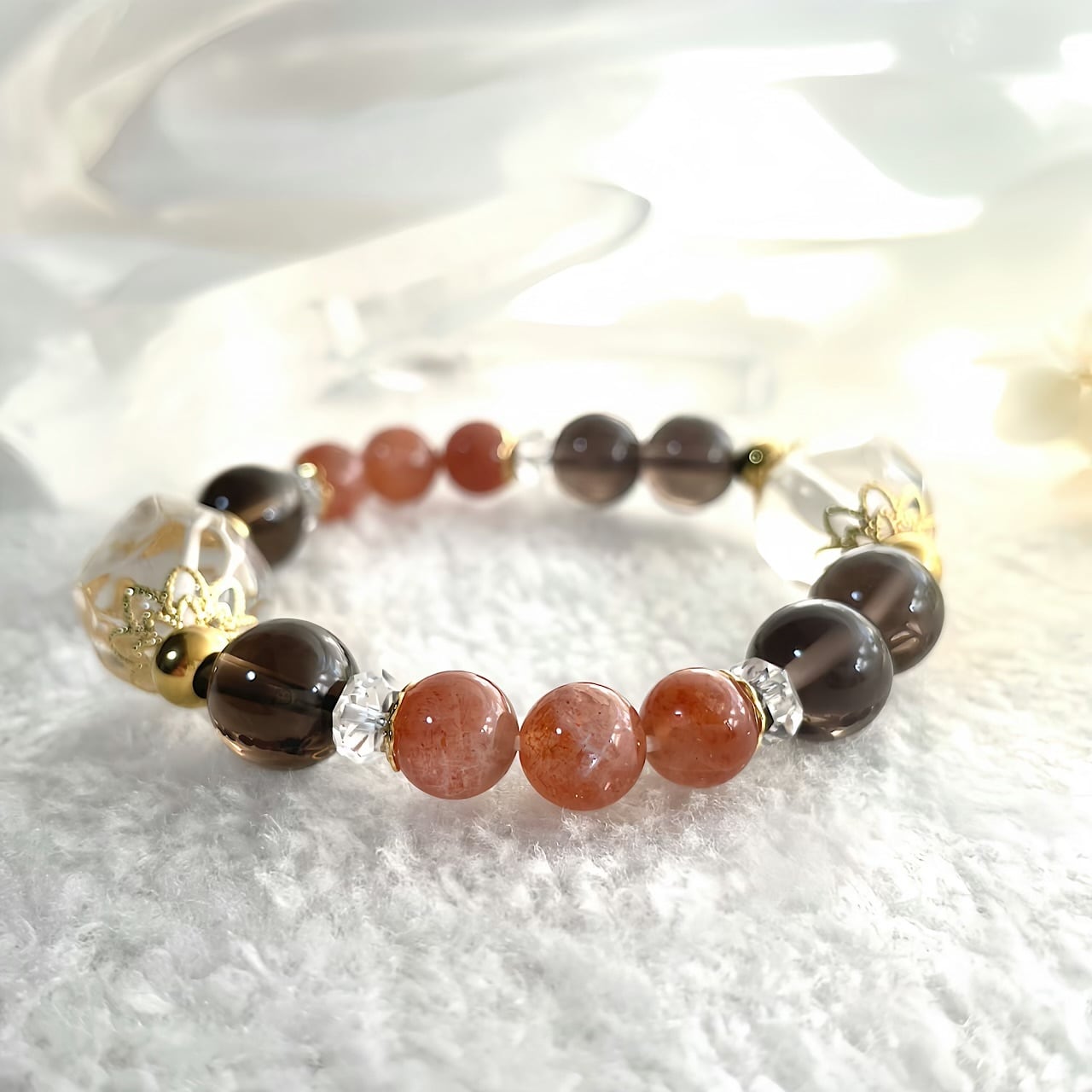 【1点もの】A gift from the sun god サンストーン×スモーキー×水晶ブレス